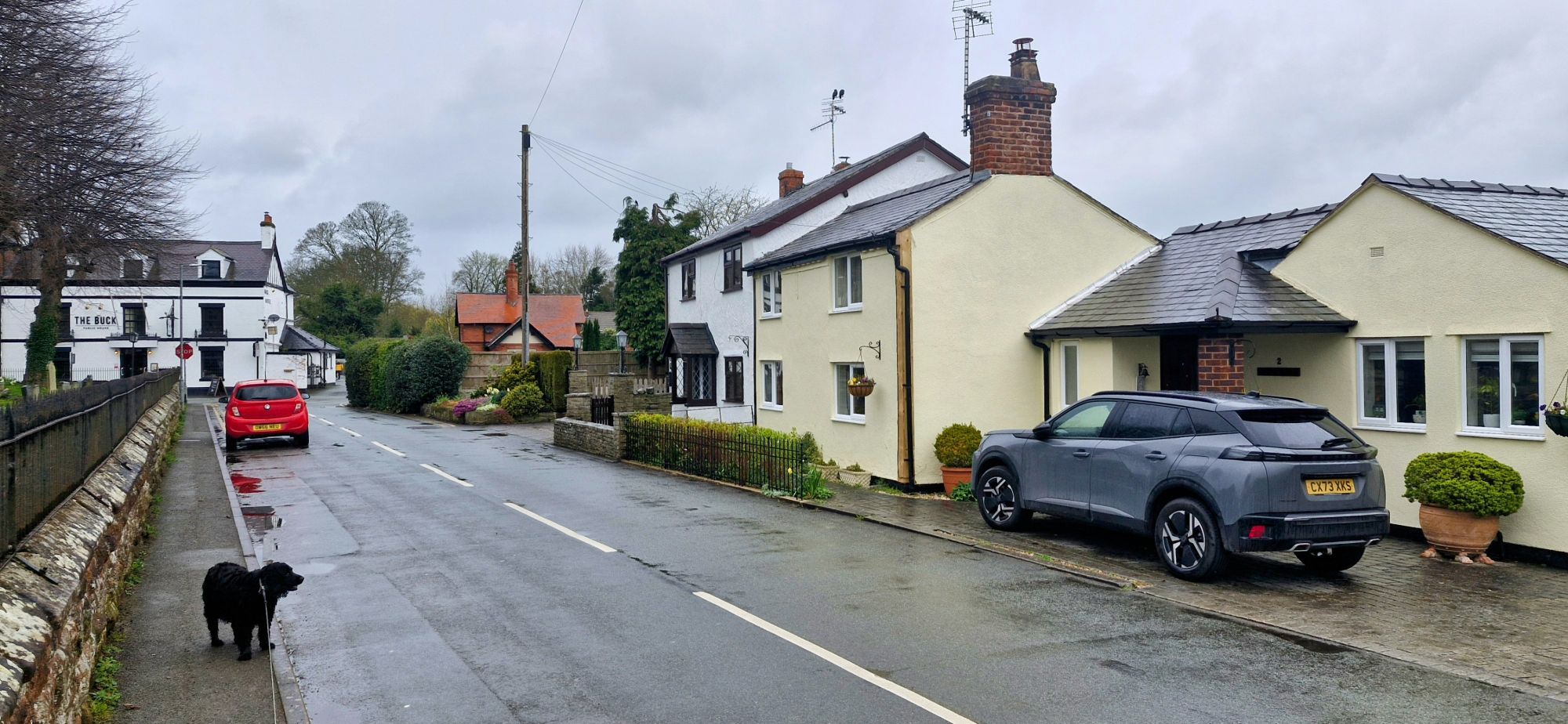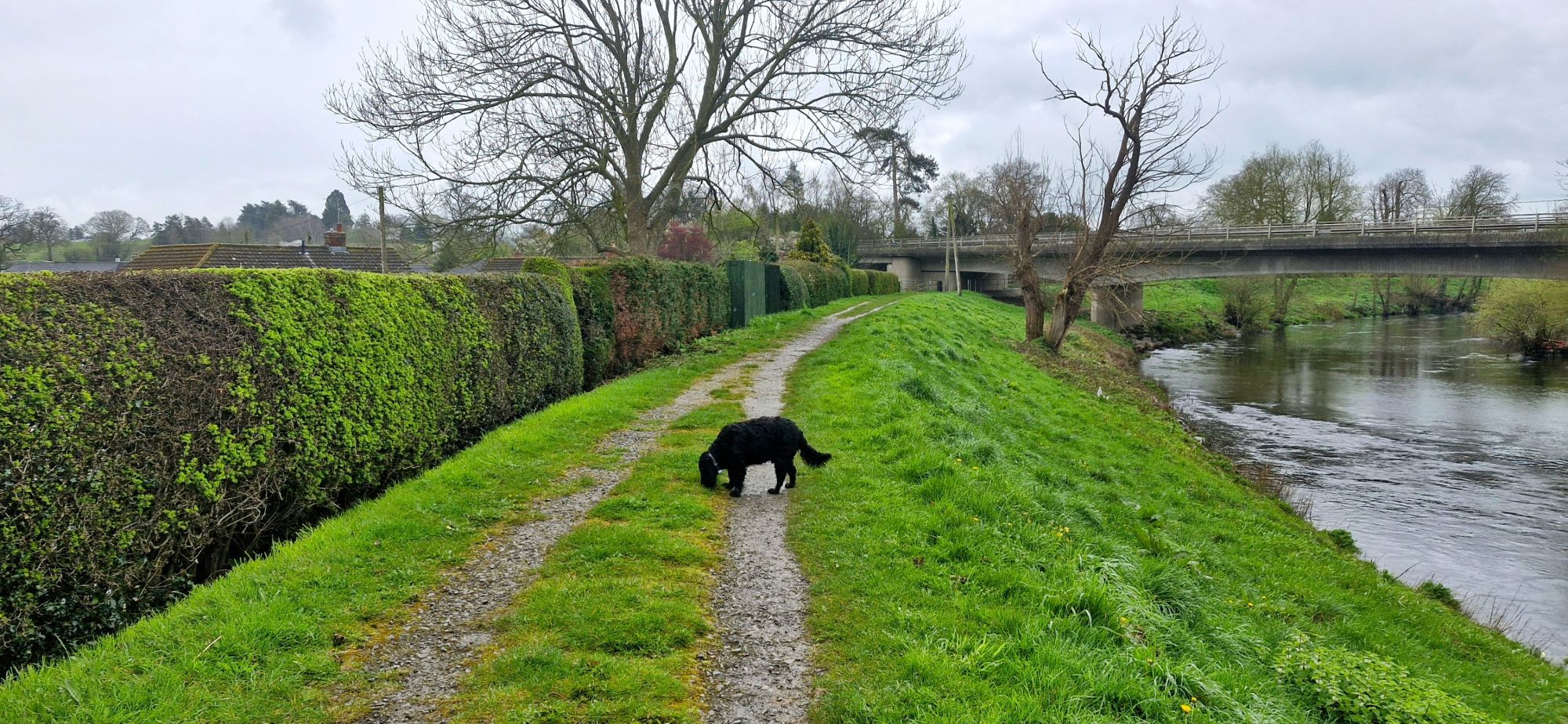 Hello again people and pooches. Joe the Cocker here, reporting on a short local village walk. Bangor on Dee is a short drive from home. You have possibly heard of the racecourse here. Horseracing ‘over the sticks’ has taken place here for over 150 years. We picked a grey, miserable, and rainy day to visit. No, wait a minute,  my human chose the day. I simply went along with him.