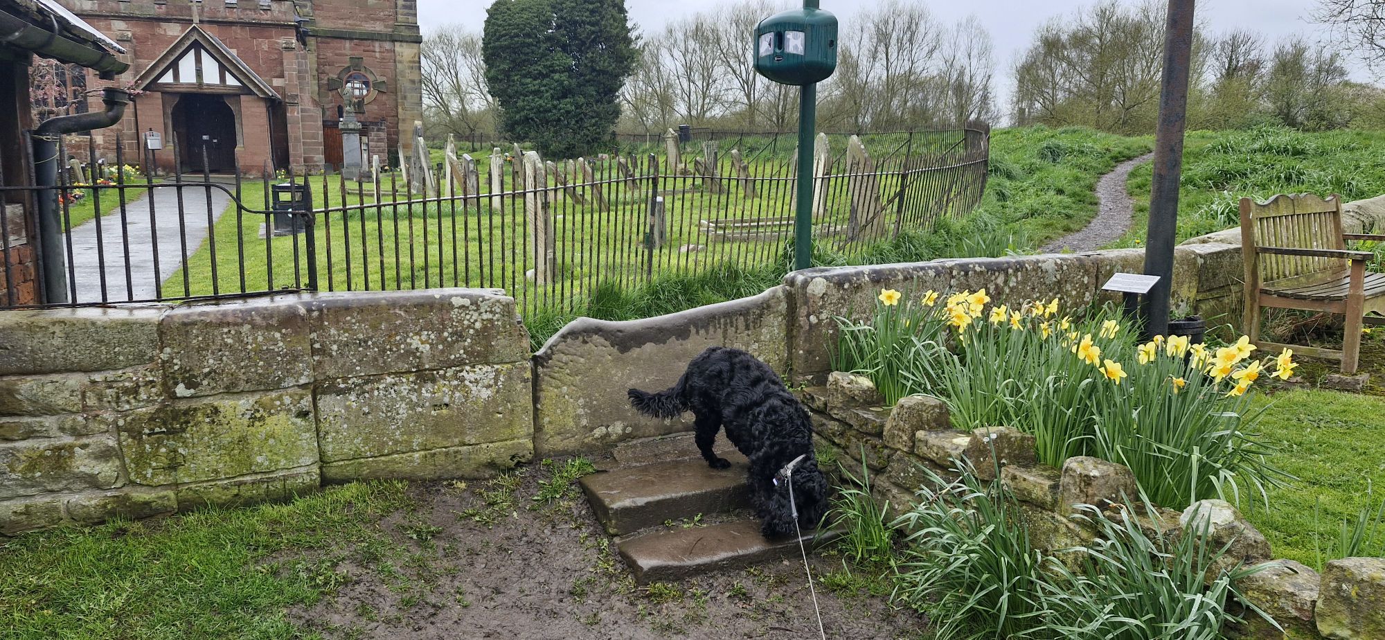 St. Dunawd’s Church is built on the site of a monastery that was built in 560 by St. Dunawd. The monastery only lasted until 616 when it was destroyed by Aethelfrith, and 1200 monks were slaughtered. A sandstone church was built around 1300, of which some parts remain today. The Grade ll* listed building is steeped in history, and my human recommends a visit to view the interior. Sadly. pooches aren’t allowed inside!