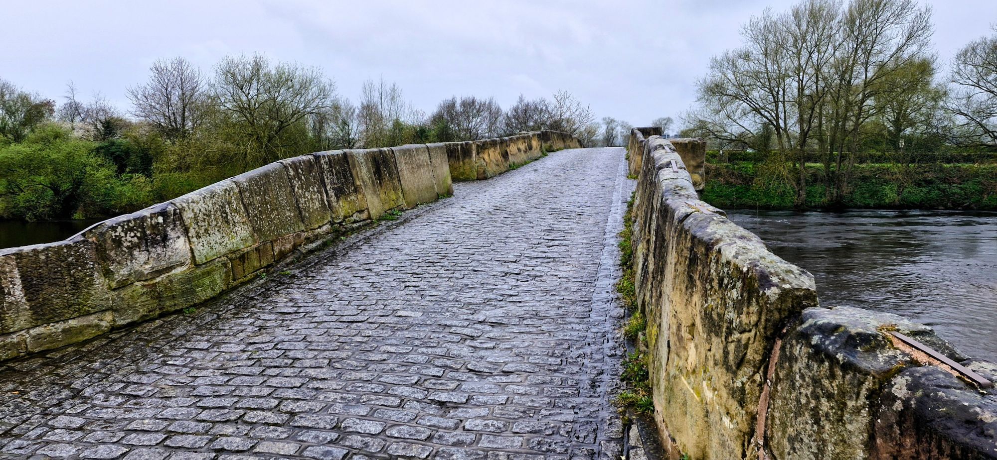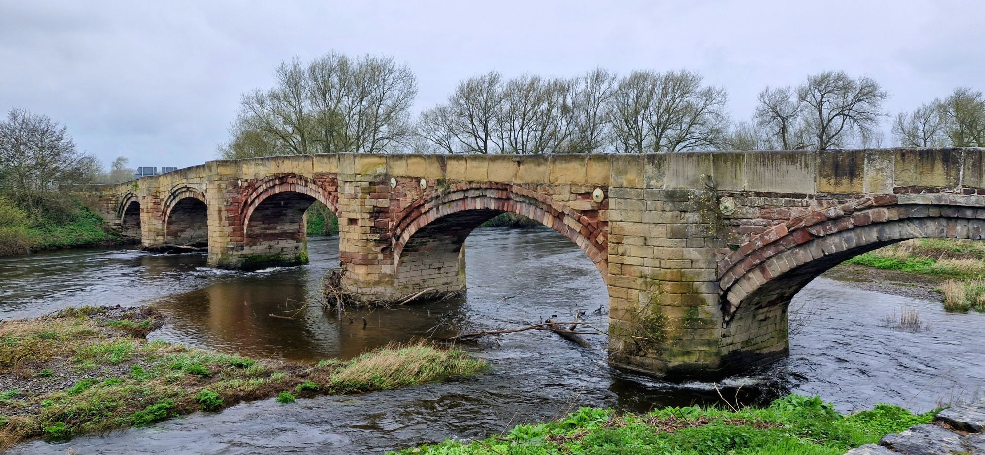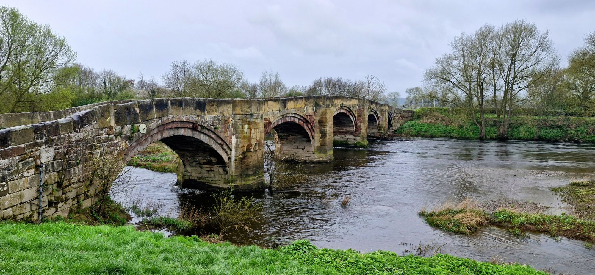 The five arched sandstone bridge was built in 1658 and is Grade l listed. It replaced an earlier medieval bridge and is thought to have been designed by Inigo Jones. It is currently a one-way bridge leading into the village only.