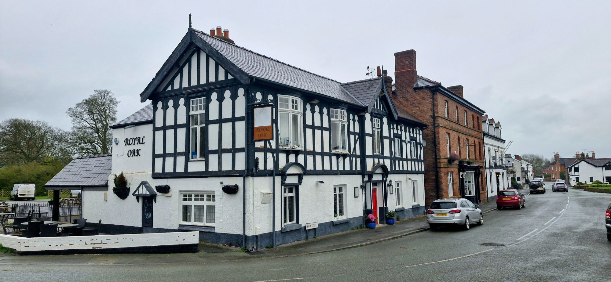 We parked on the roadside outside of the Royal Oak. The pub has been serving beer since 1851 and has been known as The Royal Hotel and The Oak, hence its current name. The black and white mock tudor building is a popular spot for food and drinks, especially in the summer months, with its beer garden overlooking the river.