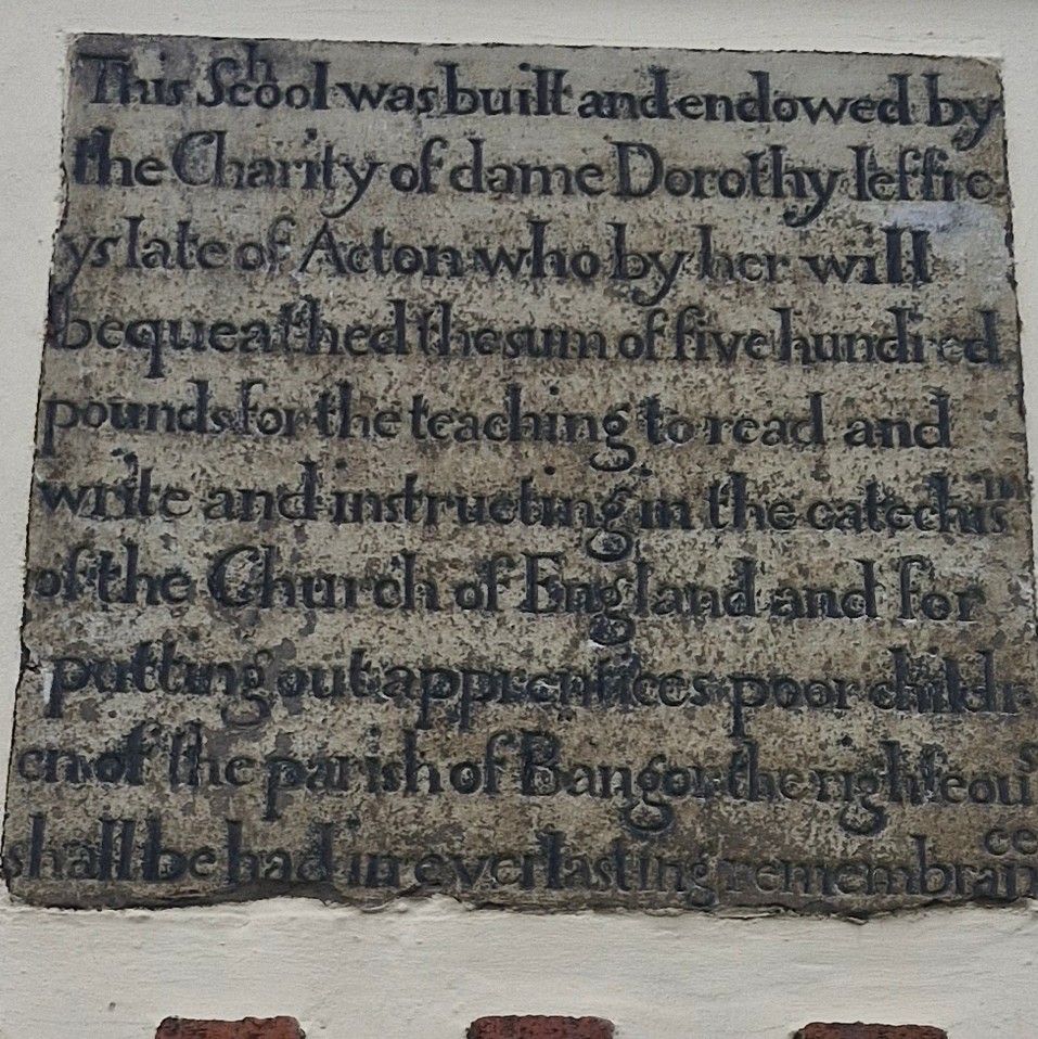 As we approached St. Dunawd’s church yard, my human spotted a plaque on the modern village hall. I asked him if it dated back to when he was in school. Ha!