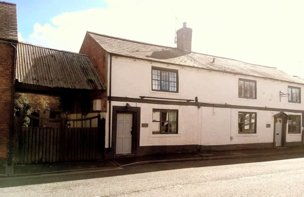 The Old Smithy, with its large cart door, completes a row of white rendered buildings.