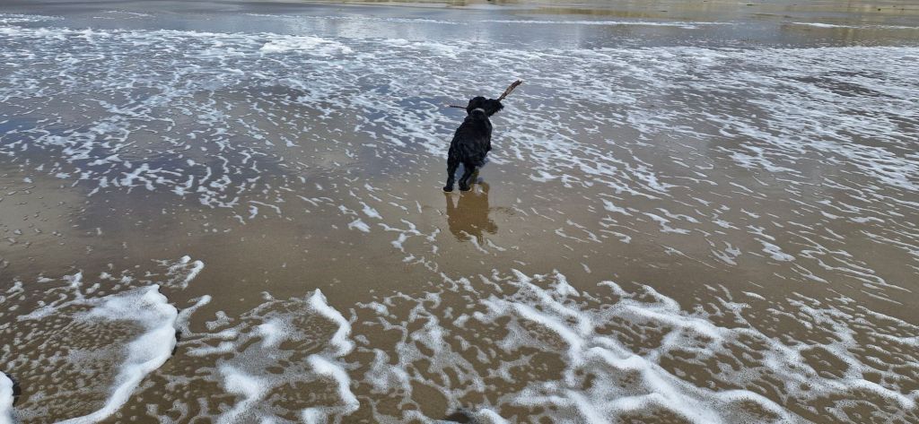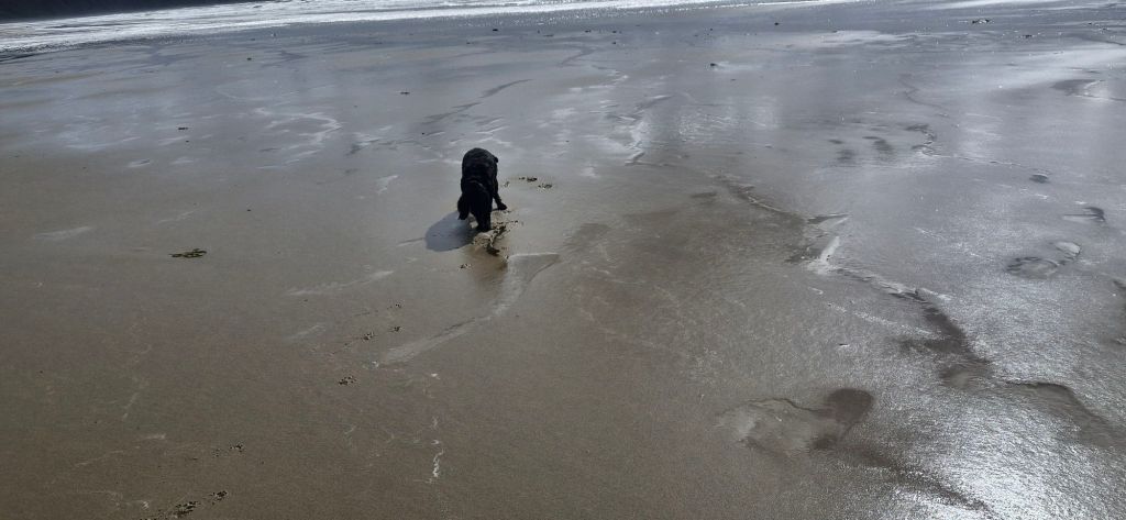 The next stage of his cabaret performance was based around attempting to pay the parking fee. He had left his coins in the cottage, so he tried to pay by debit card. The card reader wasn’t working. More cursing! He tried to pay online through the parking app. The app wasn’t recognising the location number. He was ‘losing his rag’ as another person offered to help. He explained the situation and said that we were going back to the cottage. The kind bystander offered to pay the £1.20 parking fee for him. It was probably because he was tired of waiting for my human to get his act together. Meanwhile, I was left sitting in the back of the car waiting patiently for the walk on the beach that I had been promised. Finally, he was ready to proceed with the planned walk. This human of mine needs to have a talk with himself!