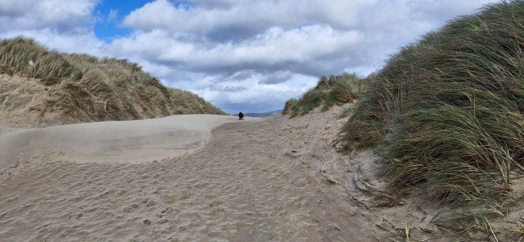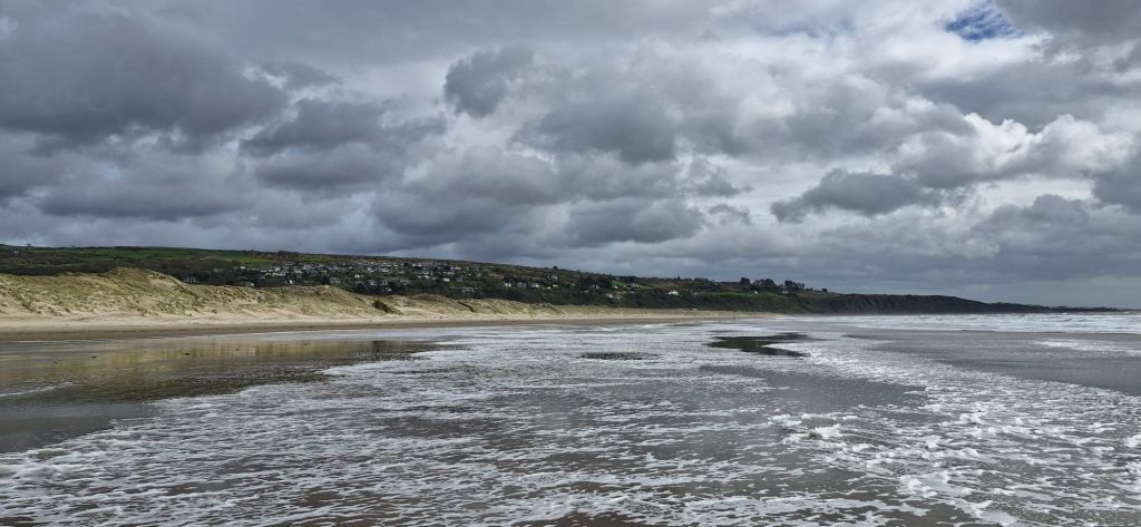 As we reached the end of the walk to the beach, the first thing to hit us was the wind as previously described. The second thing was the size of the beach. It stretches for four miles in a huge arc with flat fine sand. There is a small section in front of a caravan park that has restrictions for dogs during the summer months. Otherwise, it is free for the likes of me to run around. The third thing that surprised us was how empty the beach was. OK, the wind was wild, but it was sunny and dry.