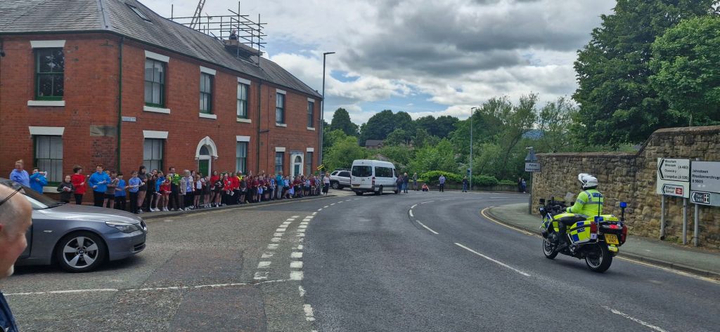 There was a lot of noise as the local school children lined the road and screamed and shouted as the police outriders and support vehicles sounded their sirens and horns.