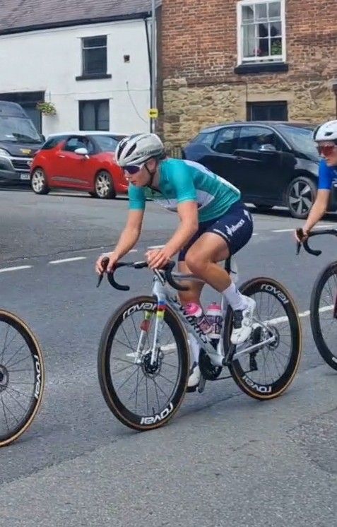 So, a minute later, the chasing bunch hurtled by with Lotte Kopecky, the World Road Race Champion tucked in menacingly, eying up her prospects. She was wearing the race leaders green jersey after her nail biting win in Llandudno on yesterday’s first stage.