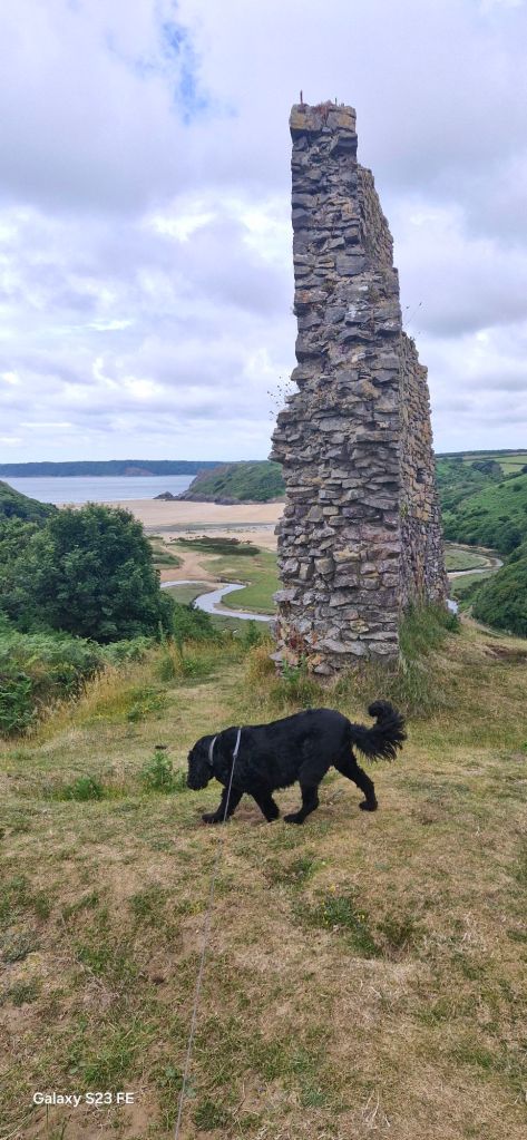 Hello again people and pooches. Joe the Cocker here reporting on one of our days spent touring Wales in the early summer of 2024. We spent a couple of nights in a converted van close to Swansea University. On this day, we drove to the nearby Gower Peninsula. Specifically, we drove to a small village called Pennard where my human had read about a ruined castle that he wanted to visit.