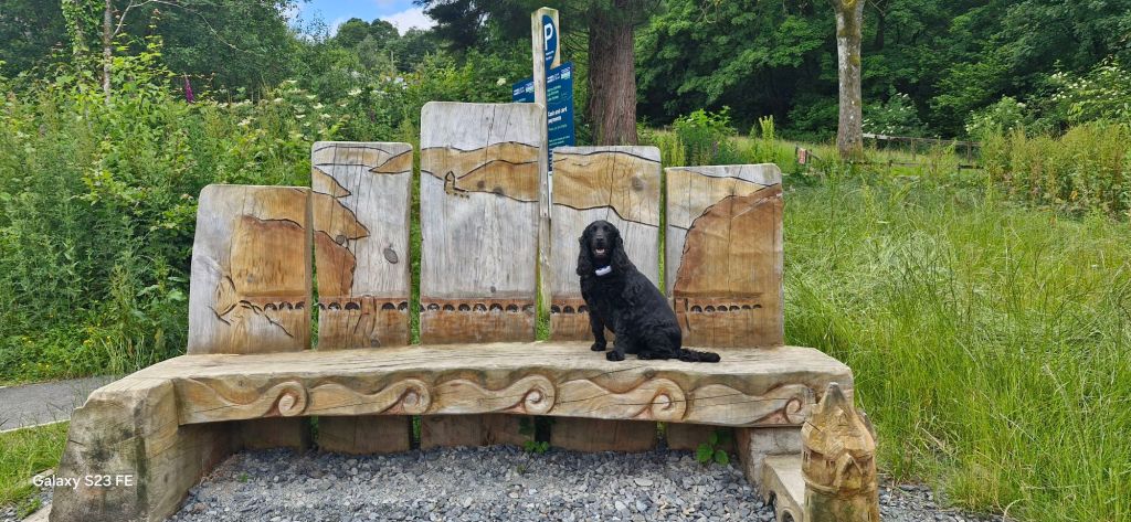 Sorry, I digress! When we turned up at the Lake Vyrnwy car park, I patiently waited while he purchased the parking ticket. No sooner had I jumped out of the car, I was forced to pose on a large wooden seat withan imageof the lake curved. It took my human a while for him to get the shot that he wanted as, apparently, I would not face the camera. Obviously, I was looking around at the place that he had brought me. It looked like I would be chasing squirrels in the very near future!