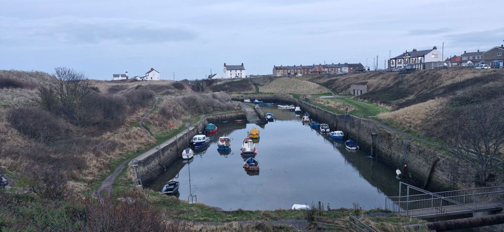 We took a short drive to Seaton Sluice, a small village at the mouth of the Seaton Burn, on the coast. The harbour was once busy in the export of coal and salt, but it was prone to silting up.