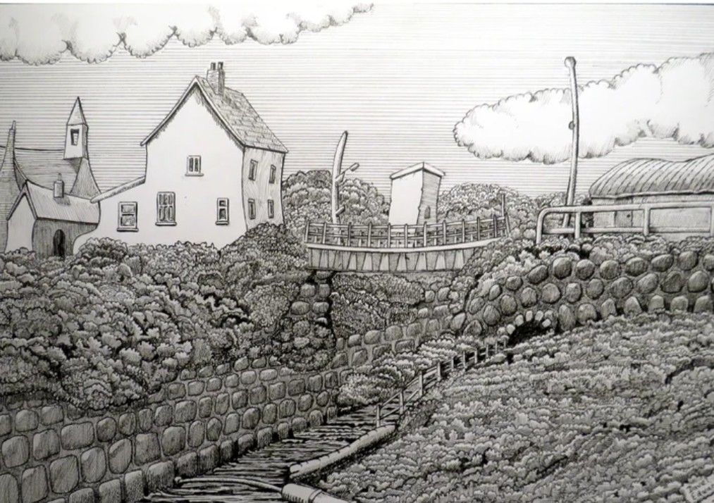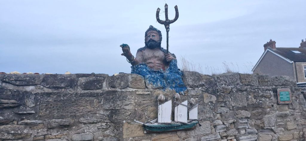 If you zoom in, you will see a mermaid on the harbour wall and a girl on a swing, dangling from the pipe at the bottom of the picture. I asked my human what they were. He didn’t know, so he asked Dave.