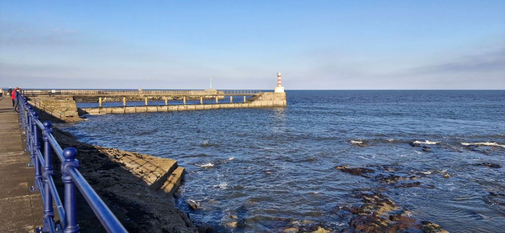 Our final port of call for the day was Newbiggin by the Sea. It’s a popular seaside resort with a large expanse of beach. One of Newbiggin’s latest attractions is ‘The Couple’, which stands on a plinth in the bay. You can just see it in my dads photo. The sculpture depicts an everyday couple, casually dressed, looking out to sea. It is by the renowned sculptor Sean Henry.