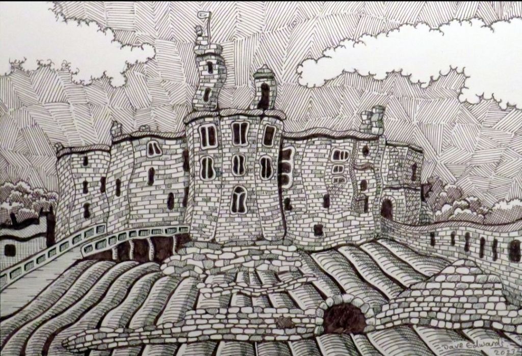 We spent a few minutes admiring Warkworth Castle from the comfort of the car. We decided that to do it justice, we needed to spend a few hours visiting the 13th century castle. Next time we are in the area, we will do just that. The village deserves more time, too. It is a beautiful place with the River Coquet meandering through it. Below are more examples of Dave’s work, including his unique ‘wobbly’ versions.